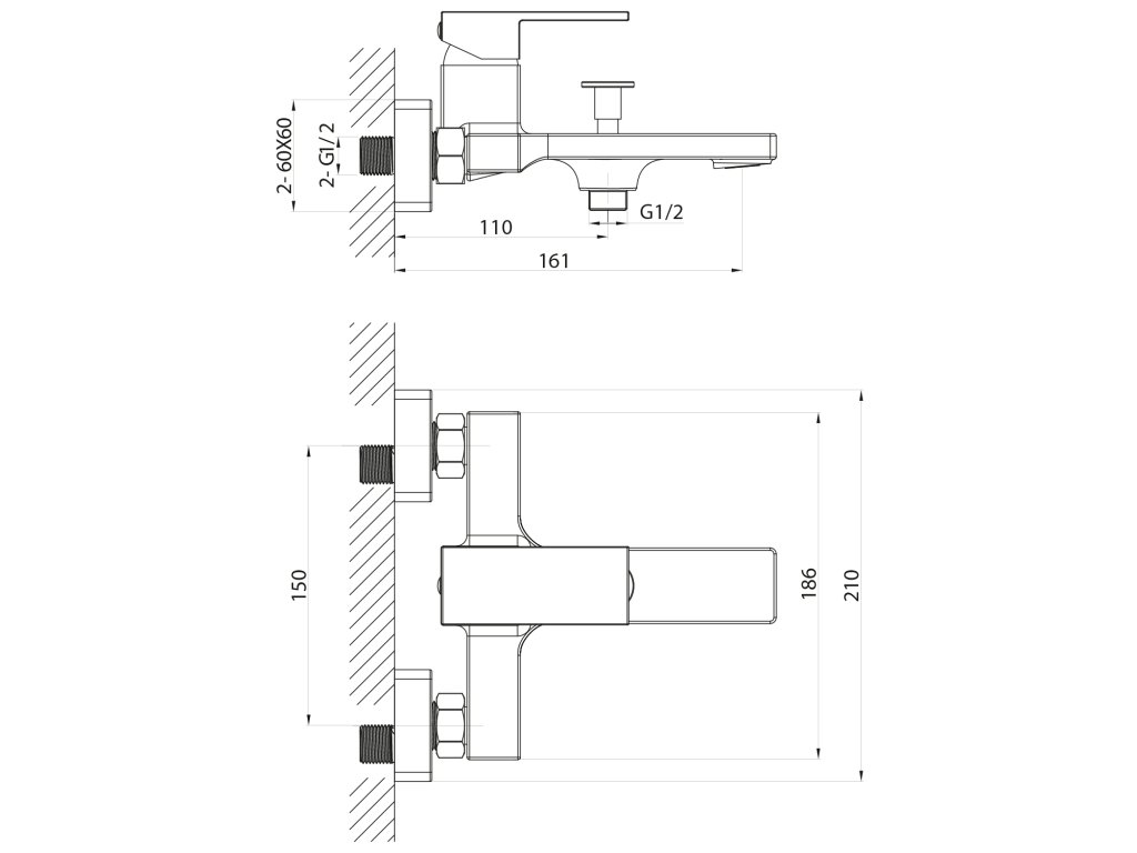 Cubemix hranatá vaňová nástenná vo farbe zlatá matná