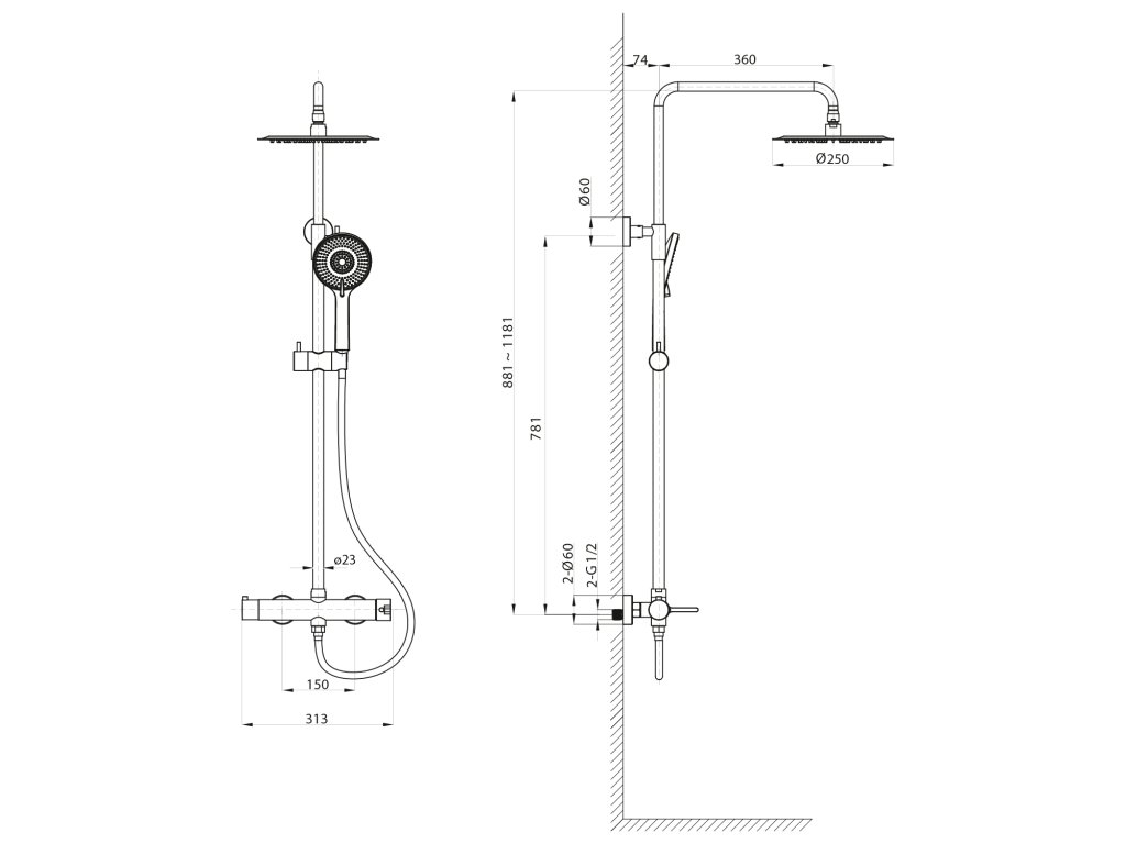 | Sprchové stĺpy | S batériou | |