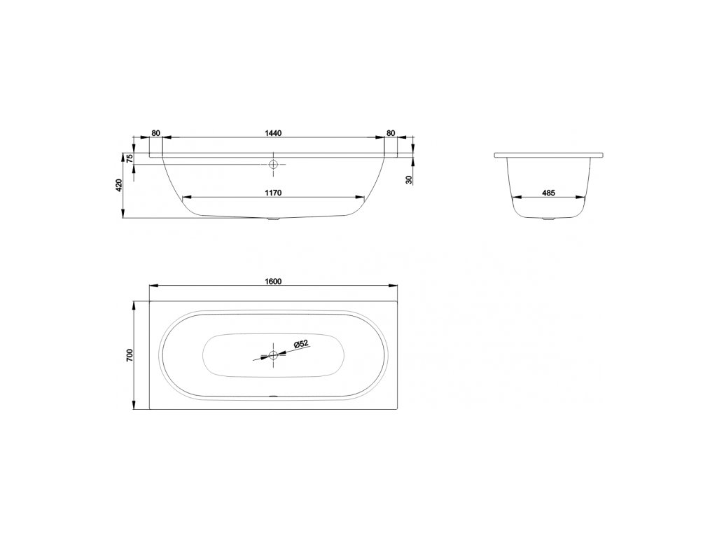 Novinka 2017 Kaldewei Cayono smaltovaná vaňa 170x75cm so stredovým odpadom. Hrúbka smaltu 3,5mm Kod výrobku: 724
