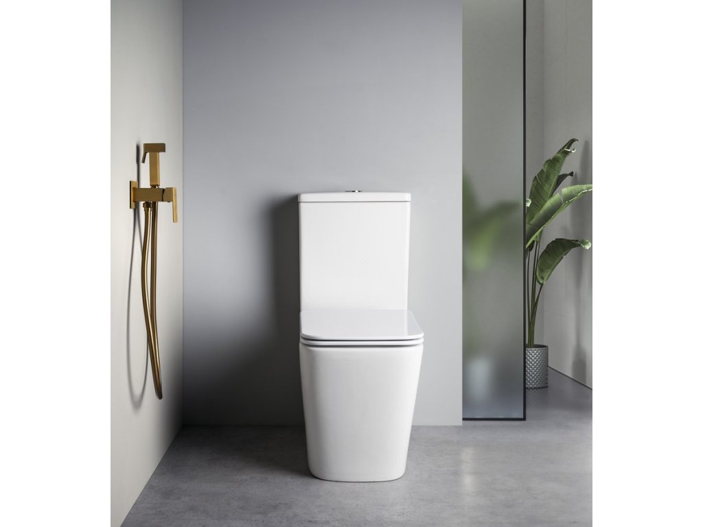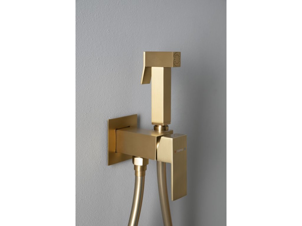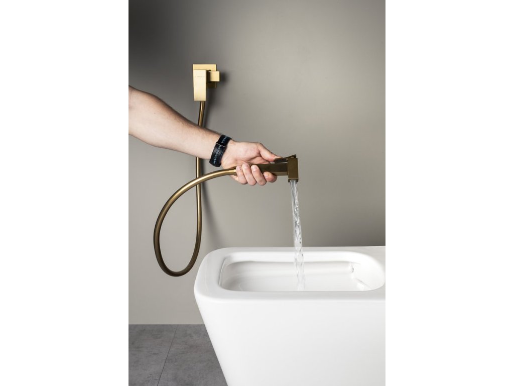 Bidetový set Sapho Iconic - malá bidetová batéria s bidetovou sprškou 2v1, farba zlatá matná.
