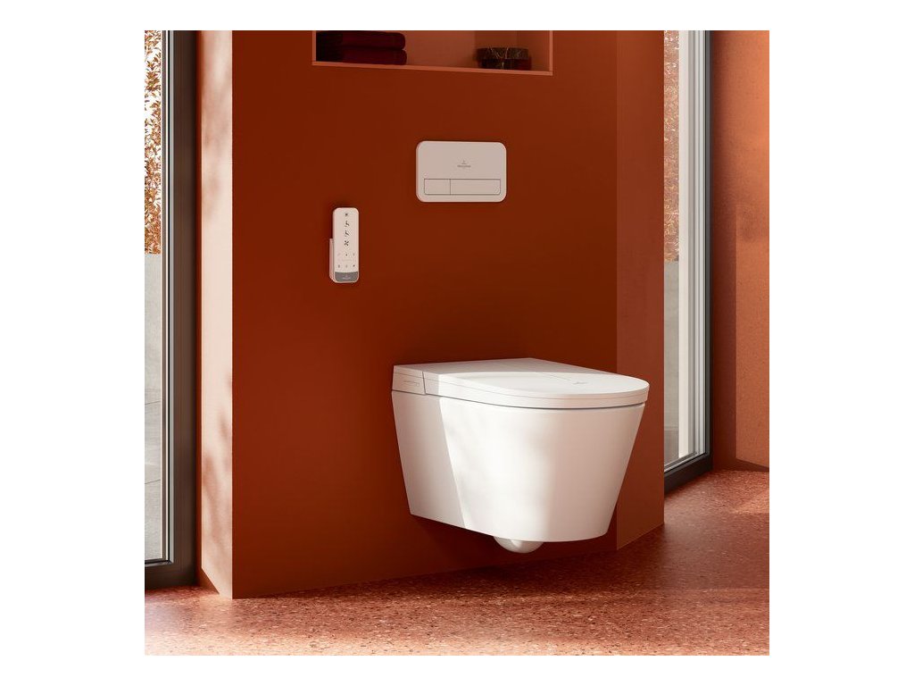 Prémiová sprchovacia toaleta Tivo-M od značky Villeroy & Boch spája elegantný dizajn, maximálnu hygienu a vysoký komfort. Ponúka viac režimov umývania, vyhrievané sedadlo, sušenie teplým vzduchom a odsávanie zápachu. Intuitívne ovládanie diaľkovým ovládačom alebo aplikáciou prináša moderný zážitok pre každodenné používanie.