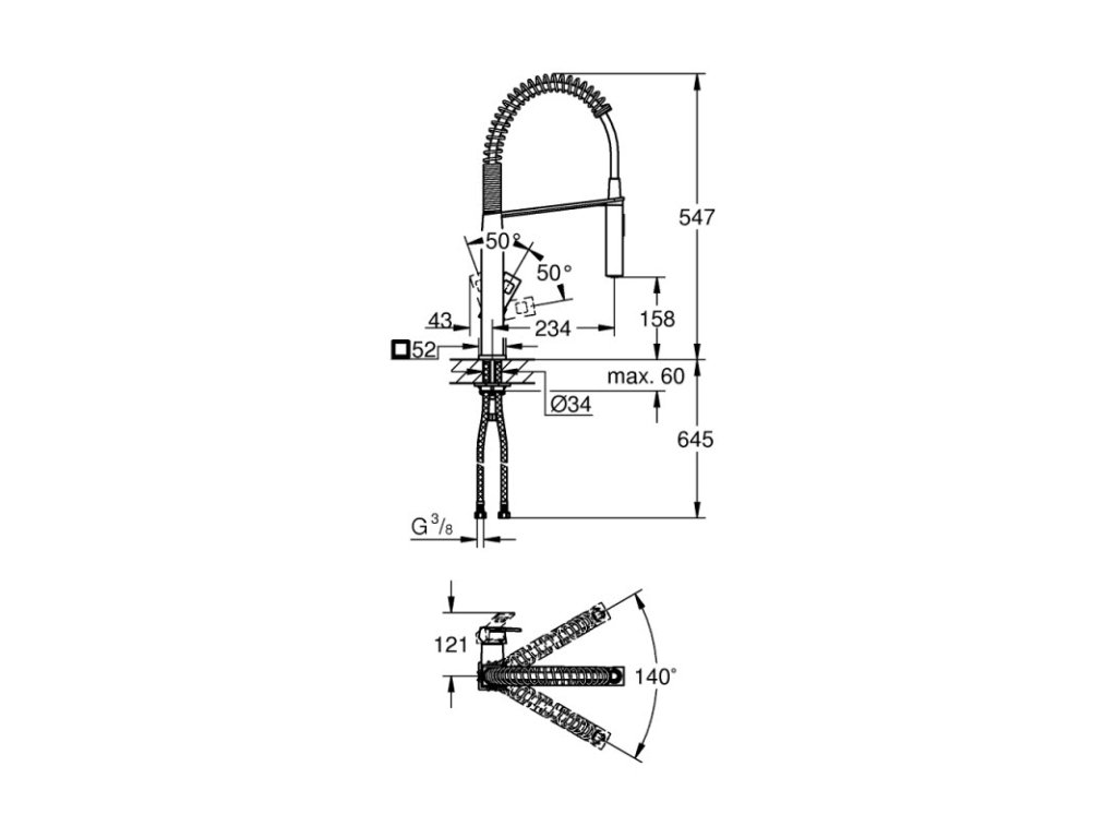 GROHE Eurocube 31255, Drezová batéria stojanková Páková drezová batéria, DN 15 vysoký výtok jednootvorová montáž...