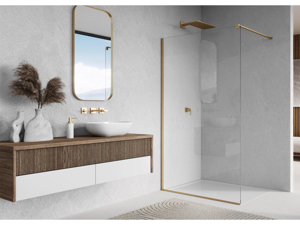 Ronal Easy samostane stojaca stena walk-in 140cm, profil kartačované zlato