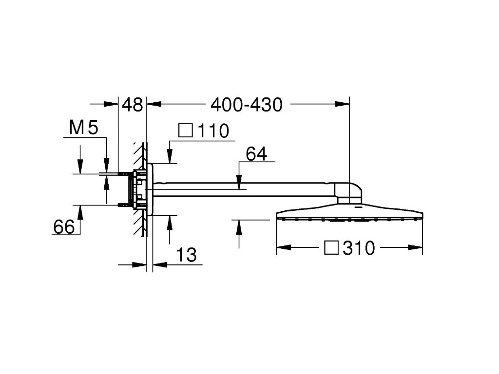 hlavová nástenná sprcha RAINSHOWER 310 Cube SmartActive 2-pol so sprchovým ramenom 430 mm chróm ( k telesu 26484000 )
