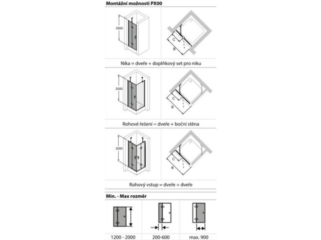 - Na montáž do niky a na kombináciu s bočnou stenou Astra alebo pre rohový vstup