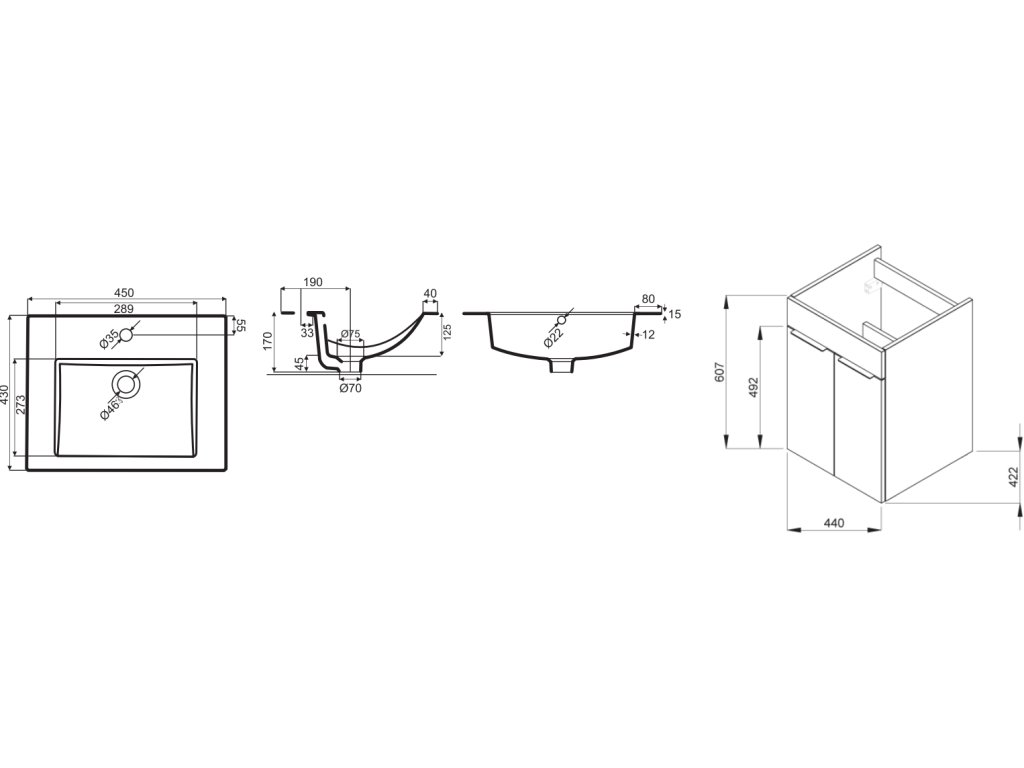 Jika Cube - biela skrinka + keramické umývadlo 45 cm