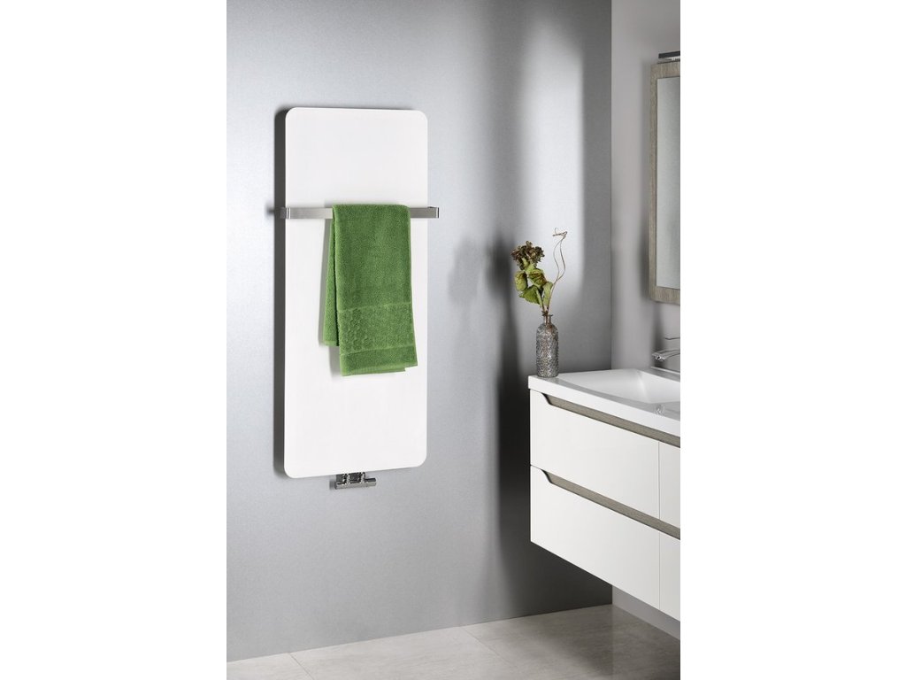 Tabella dizajnový radiátor 37x119cm s bielym matným krytom. Možnosť dokúpiť nerezový držiak na uteráky.