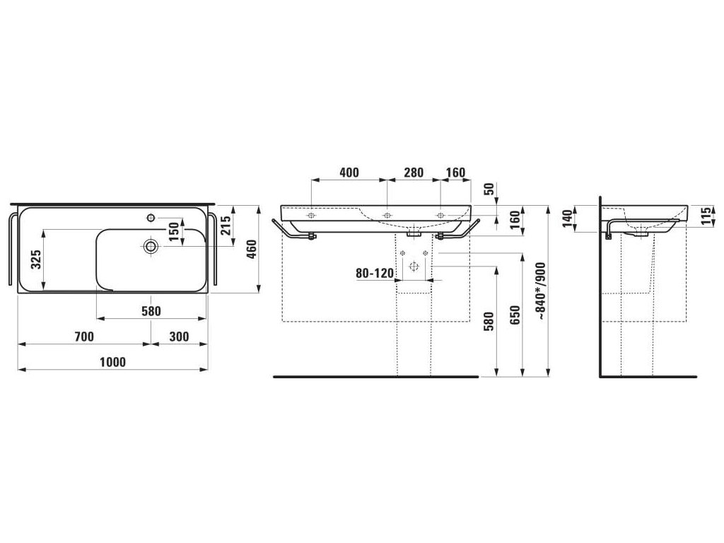 Laufen Meda umyvadlo 100x46cm s odkladacou plochou vľavo
