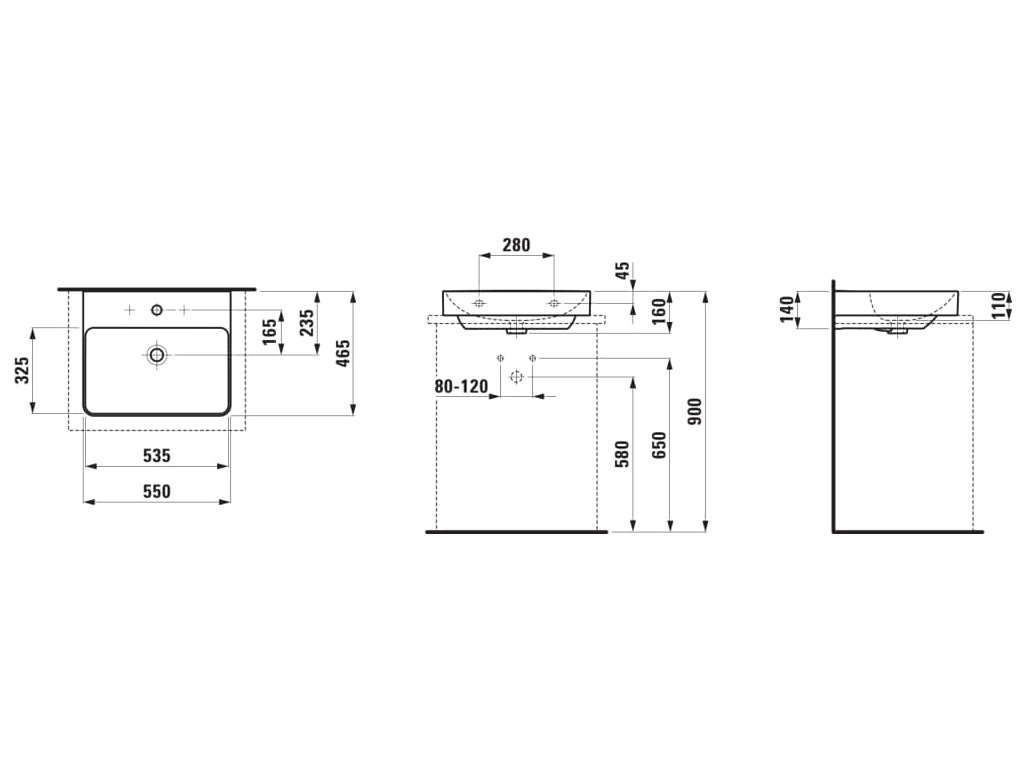 Laufen Pro S umývadlo 55x46,5 cm s otvorom pre batériu, brúsena spodná časť vhodné aj na položenie na dosku kod:...
