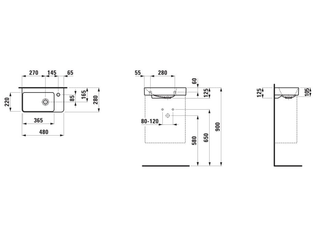 Laufen Pro X malé umývadlo 48x28cm batéria vpravo
