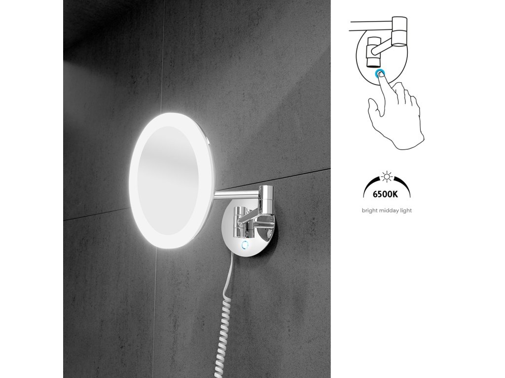 Nástenné kozmetické zrkadlo, okrúhle, s LED osvetlením.