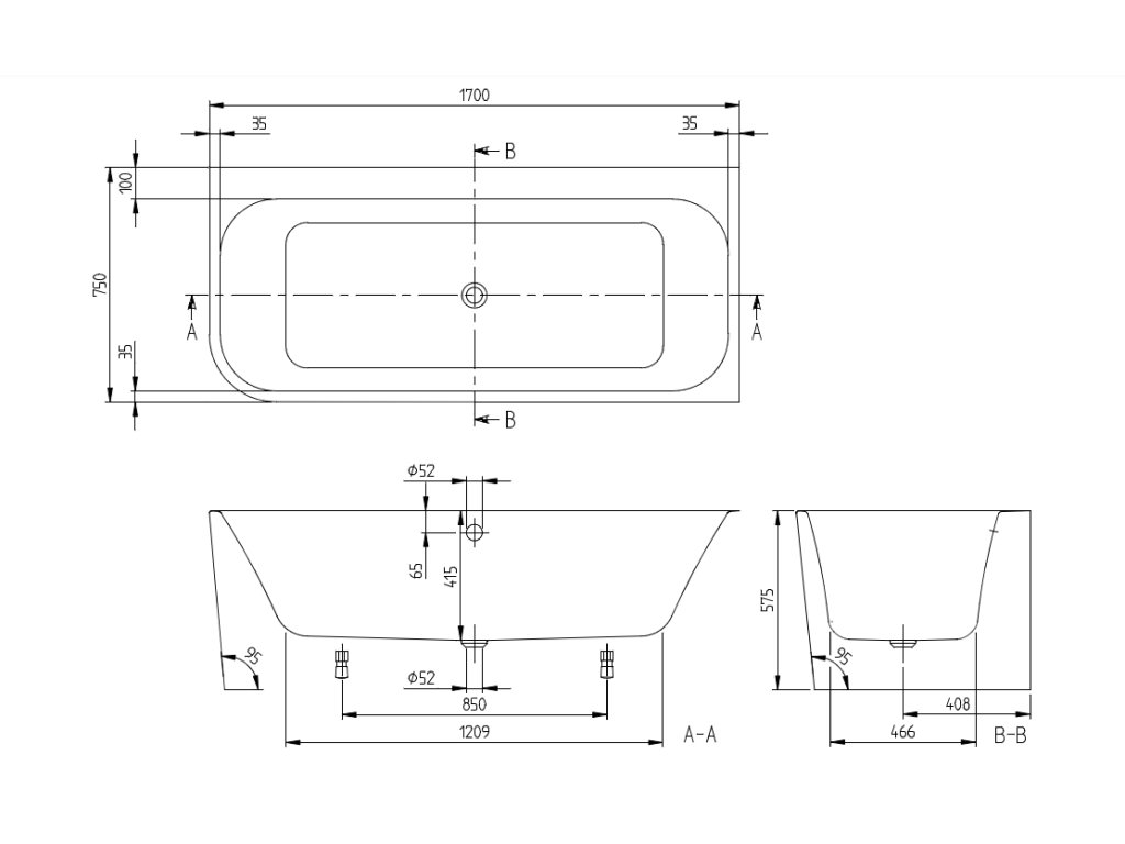Villeroy & Boch Architectura vaňa ku stene 1700x750mm, pravá
