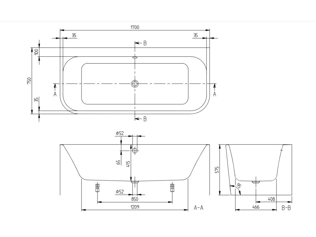 Villeroy & Boch Architectura vaňa ku stene 170x75cm