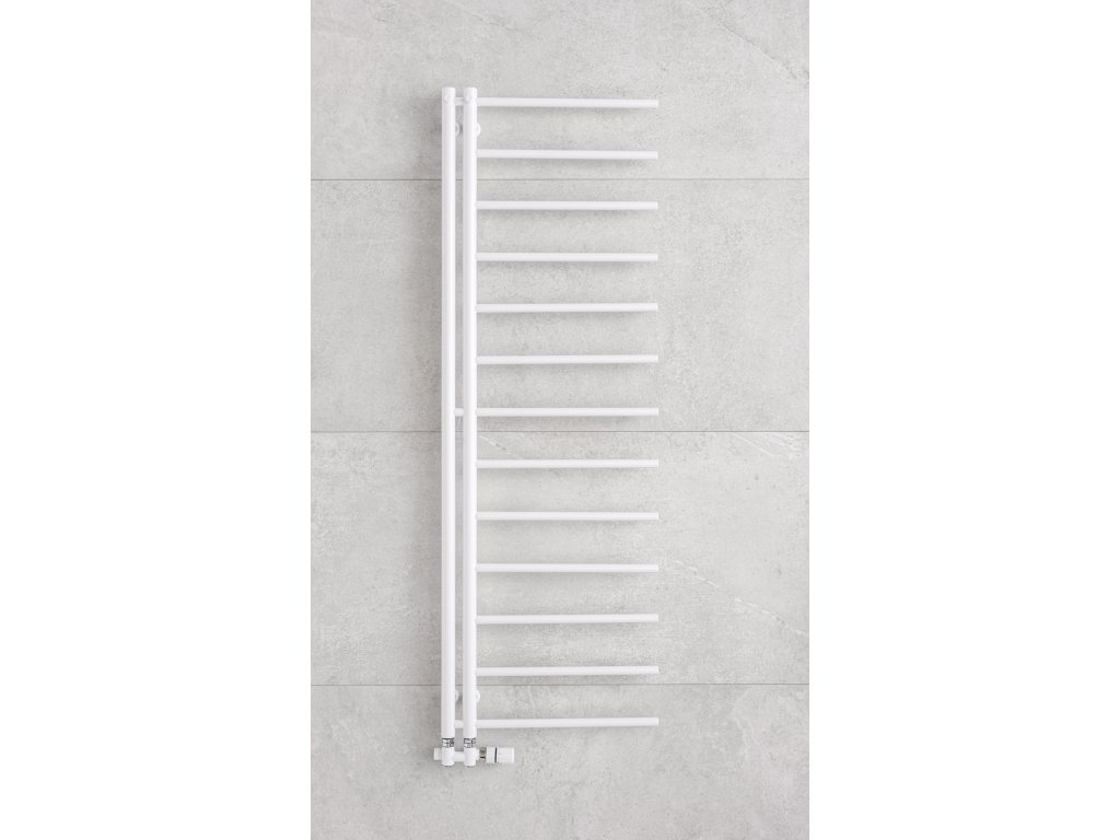 Radiátor ponúka výhodu jednoduchého zavesenia uterákov zo strany alebo na háčiky, ktoré sú umiestnené na 2 vertikálnych rúrkach.