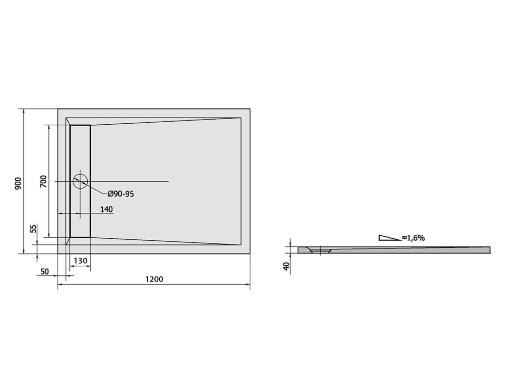 Polysan Varesa sprchová vanička 120x90cm so žlabom