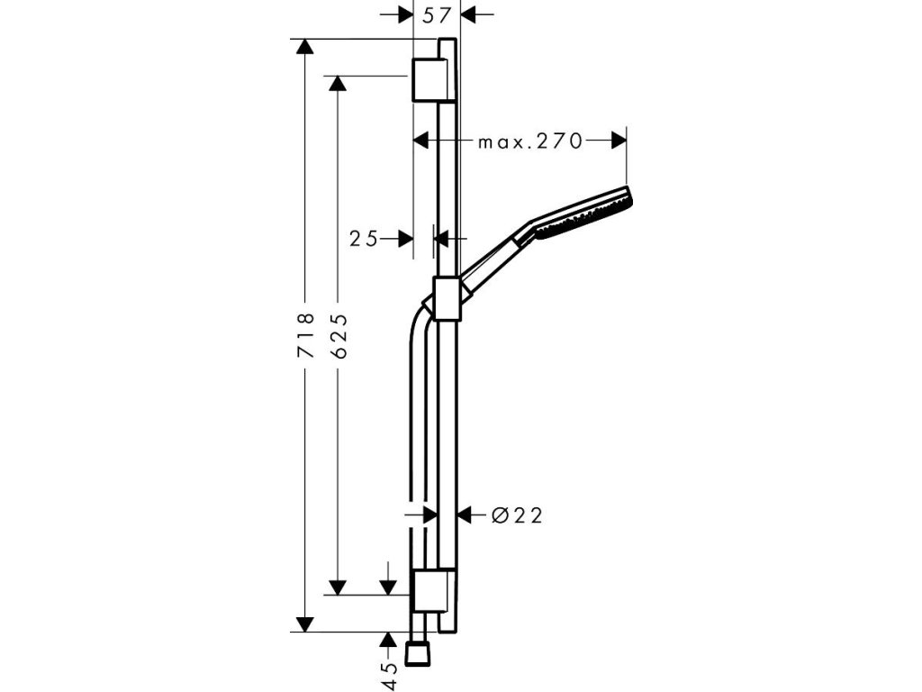 - Obsah balenia: ručná sprcha, jazdec, sprchová tyč, sprchová hadica
