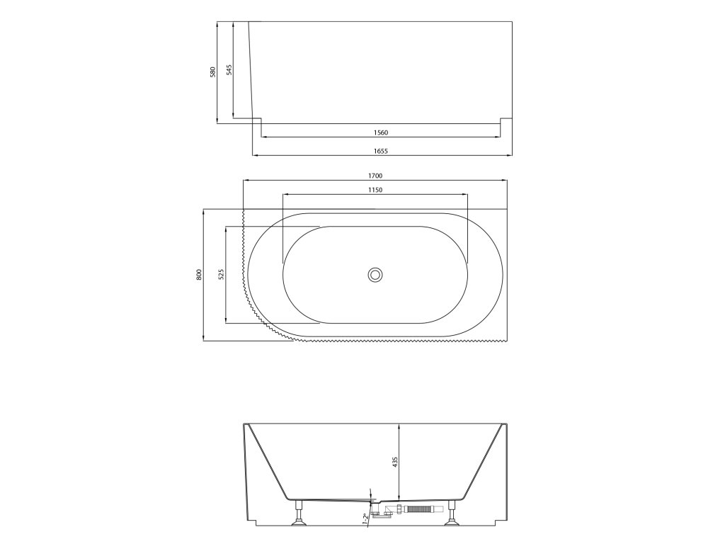 Súčasťou vane je prepadová súprava, výpusť s click-clack zátkou a sifón