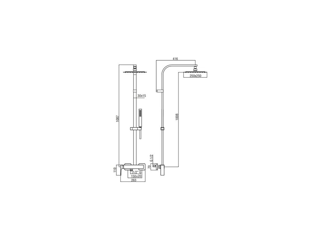 Rozmer hlavovej sprchy: 250x250 mmDĺžka sprchovej tyče: 1 087mmDĺžka sprchovej hadice: 1 500mm