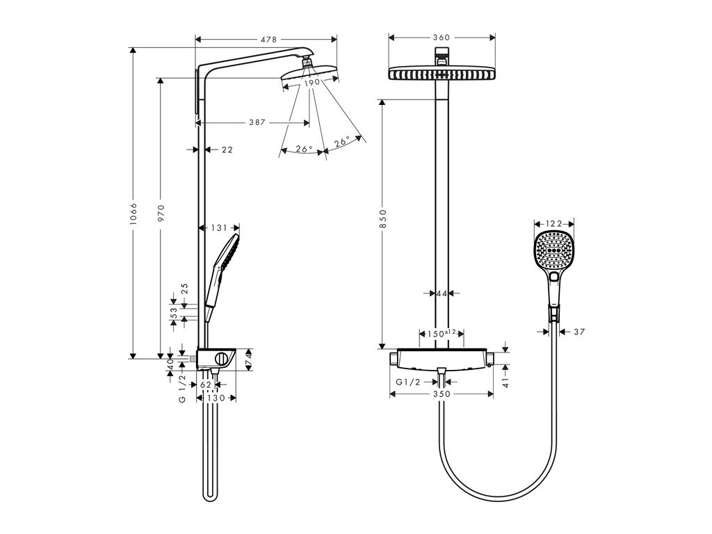 Hansgrohe Raindance Select - E 360 1Jet sprchový systém s termostatom 27286000