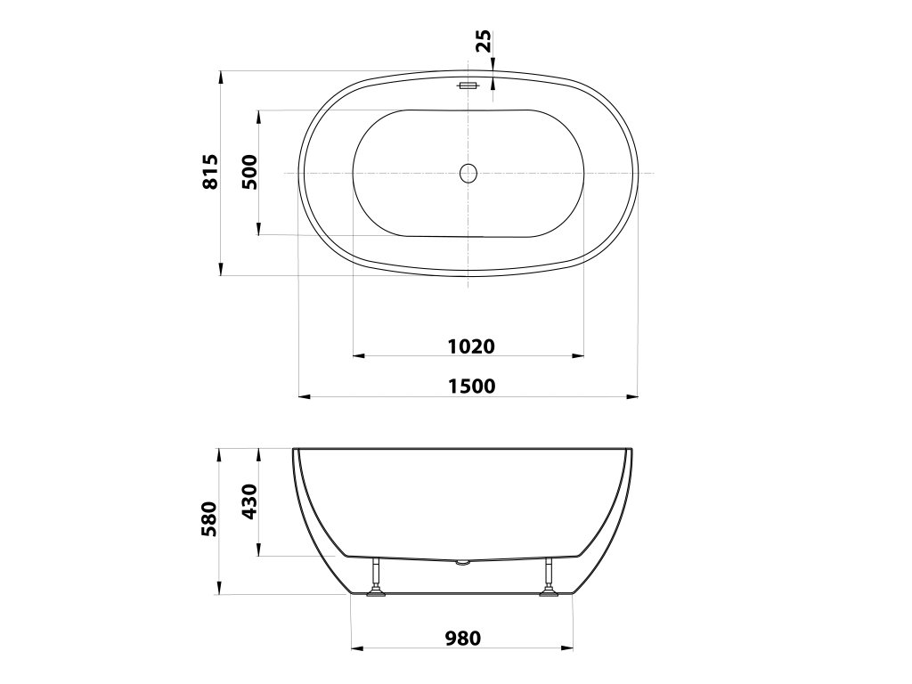 AquaLine DOURO voľne stojaca vaňa 150x80cm, biela
