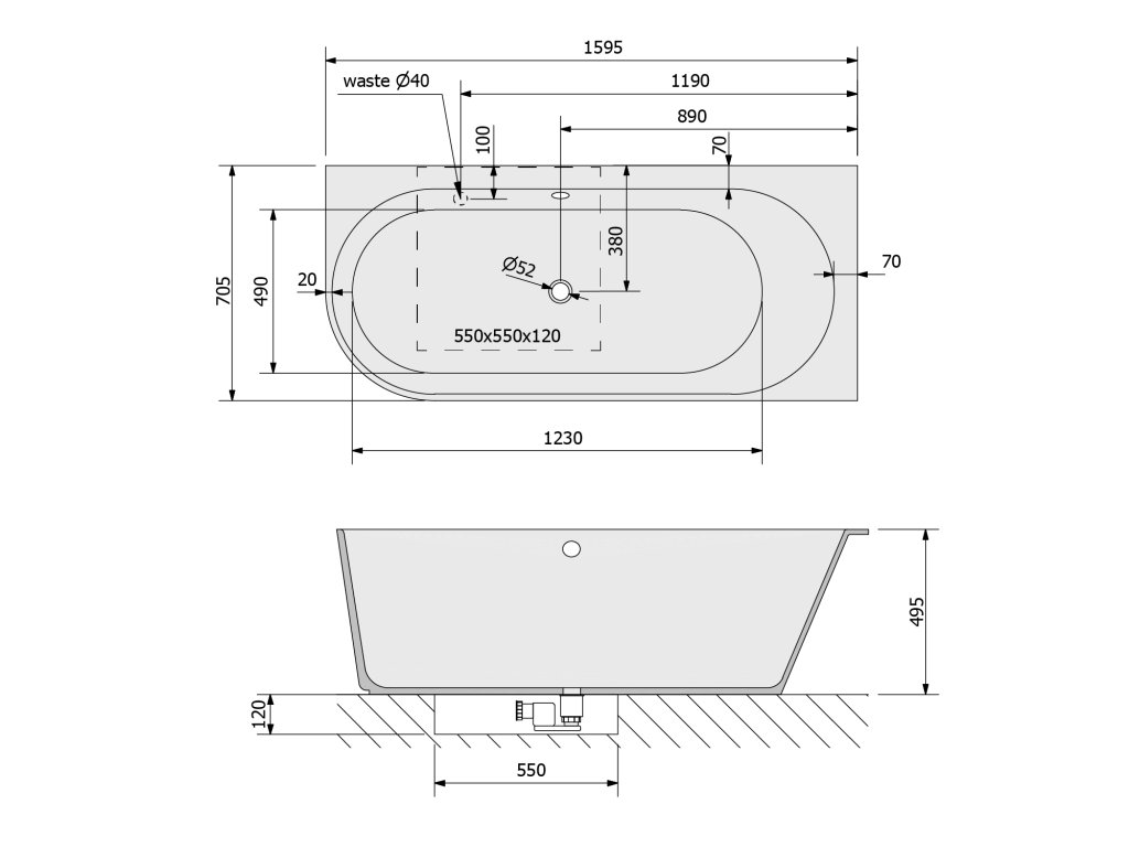 Polysan Sussi R voľne stojaca vaňa liaty mramor 160x70cm