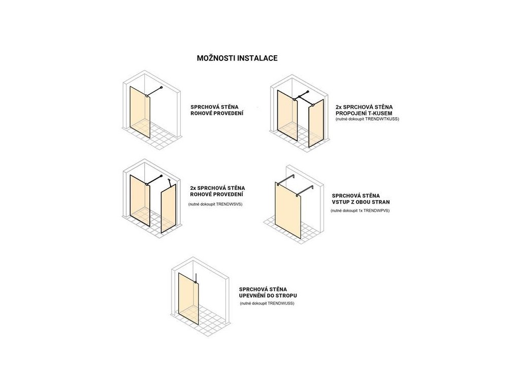 Pri navrhovaní nástennej zostavy Trend odporúčame, aby vstupný otvor do sprchovacieho kúta bol