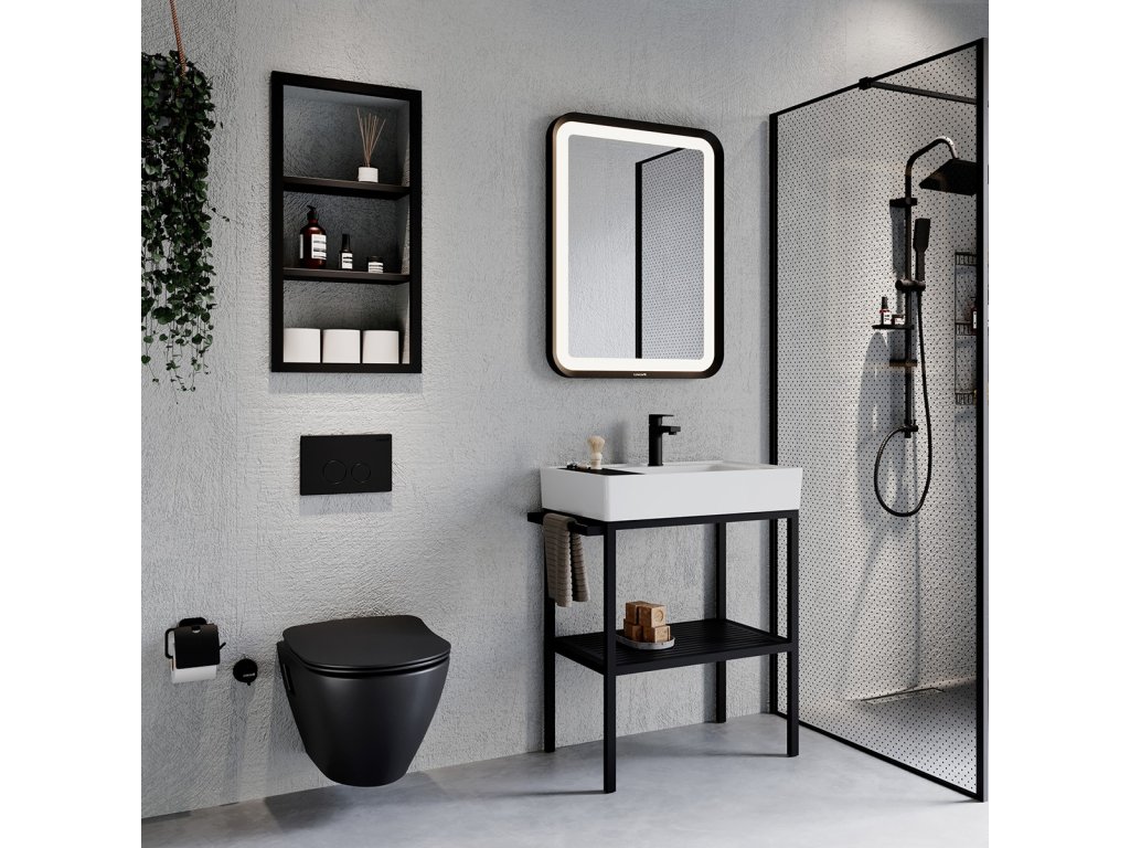 Model strednej veľkosti, vhodný do všetkých kúpeľní. Jemné línie pôsobia elegantne a harmonizujúco. Vďaka svojej matnej čiernej farbe môže vytvoriť dominantný prvok vo vašej kúpeľni a spestriť celkový dizajn.
