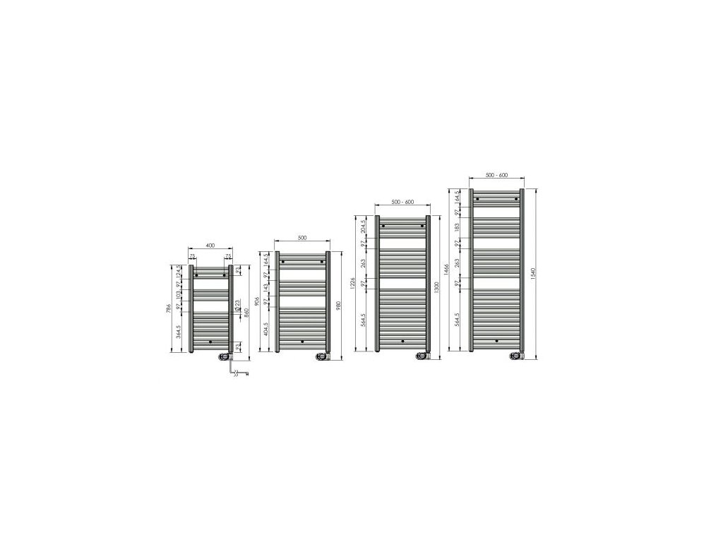 - Prevedenie s vonkajším pripojením 2x ½“ vo zvislých rúrkach pre prívod a spiatočku alebo pre 1-bodovú armatúru a el. vykurovaciu tyč
